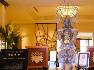 ステンドグラス製の日本甲冑(かっちゅう)「豊臣秀吉」が現在、名古屋マリオットアソシアホテル(名古屋市中村区名駅1)15階のロビーに展示されている。