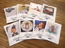 子どもたちが描いた全8種類の豊臣秀吉像をパッケージにデザインしたコーヒードリップバッグ
