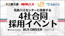 名鉄バス、JR東海バス、岐阜バス、三重交通の4社が11月30日、都市型広場「Meieki Parklet(メイエキパークレット)」(名古屋市中村区名駅南1)で「4社合同 バス運転士採用イベント」を初開催する。
