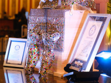 名古屋駅前の名鉄百貨店本店(名古屋市中村区名駅1)のシンボルとして親しまれている「ナナちゃん」が12月26日、7種類の同店の歴代包装紙デザインをモチーフにした衣装姿に「変身」した。