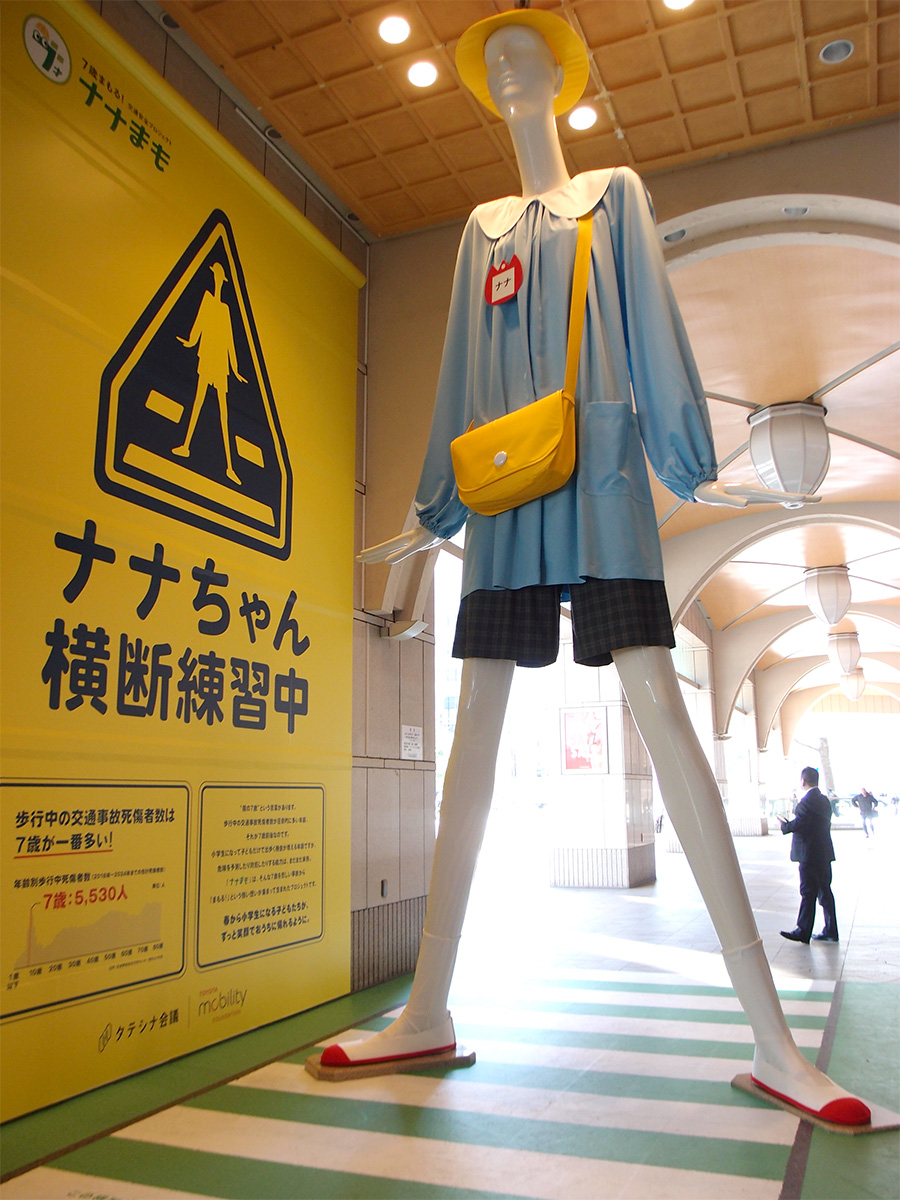 「小学校入学前の園児が横断歩道を渡る練習をしている」姿に「変身」したナナちゃん人形