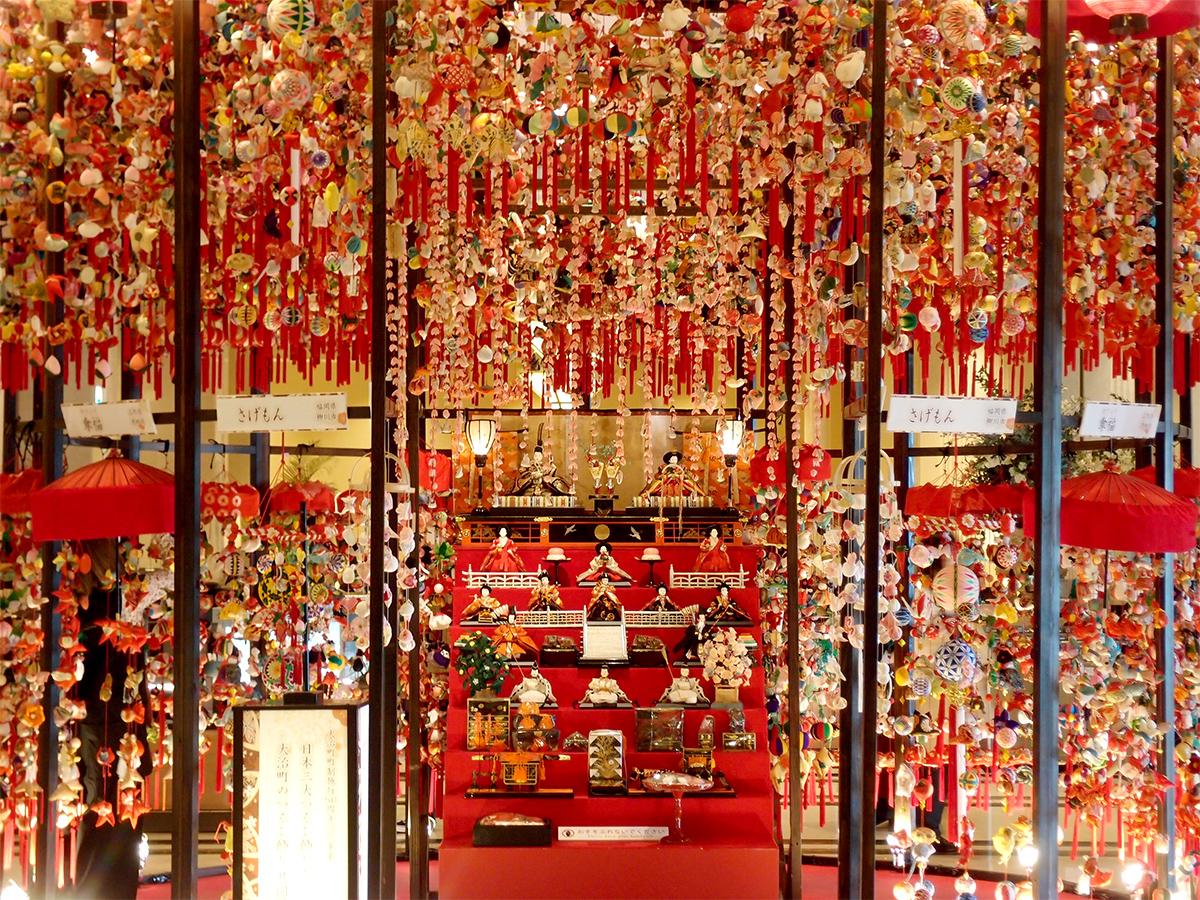 恒例企画「雛(ひな)のつるし飾り」が現在、名古屋マリオットアソシアホテル(名古屋市中村区名駅1)15階ロビーで行われている。
