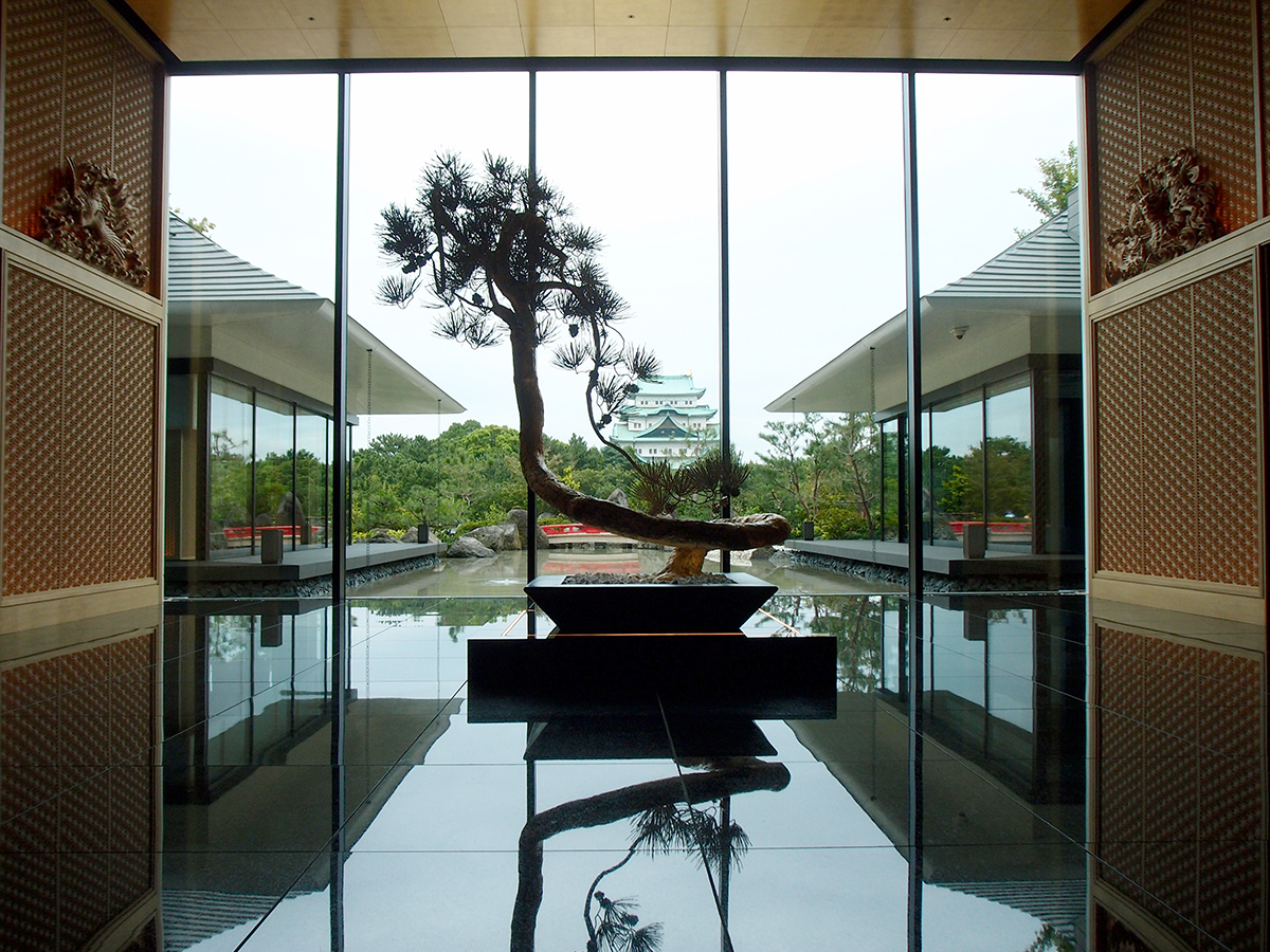 屋上庭園と名古屋城天守が見える4階ロビーから