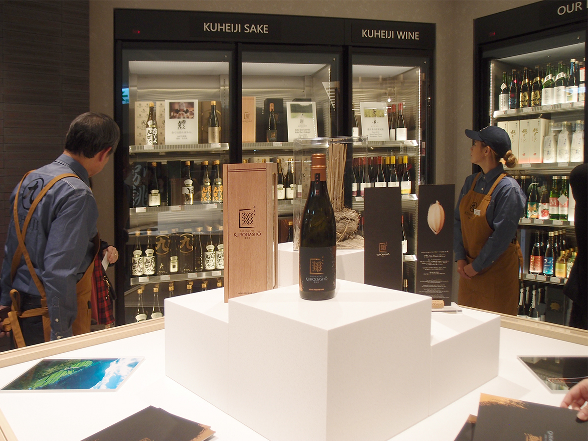 和酒売り場に新設した「KUHEIJI」の日本酒とワインを販売するコンセプトコーナー