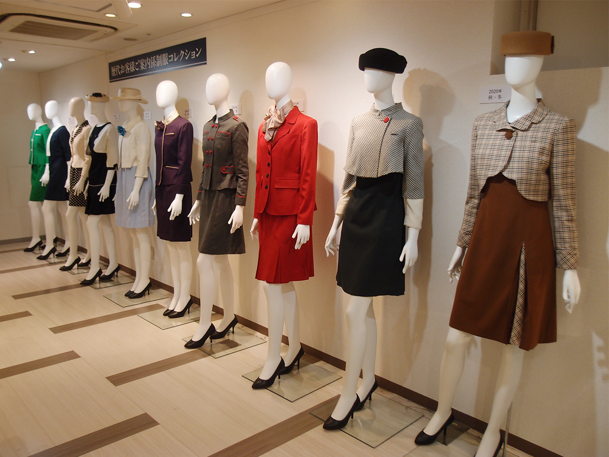 「71年分の歴史展」会場に展示する現存する名鉄百貨店案内係の歴代制服