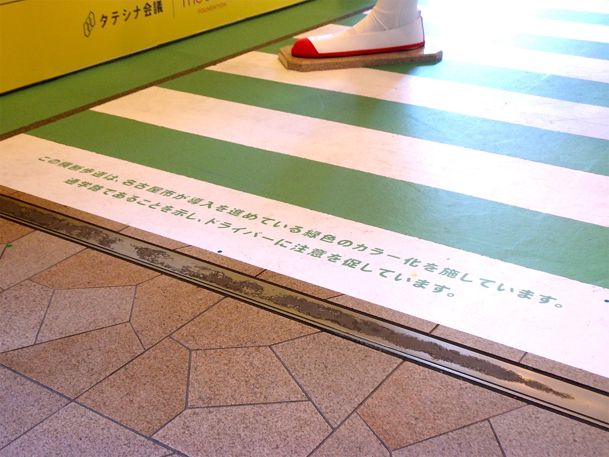 ナナちゃん人形の足元の緑色を用いてカラー化した「横断歩道」には紹介文を添える