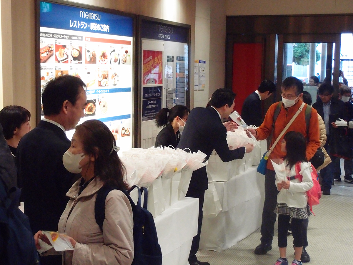 開店時には本館1階正面玄関でガーベラ1輪を進呈