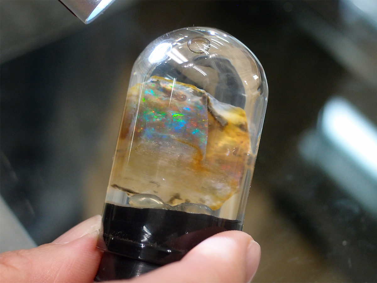 光を当てると多様な色に輝く樹木の化石「ウッドオパール」