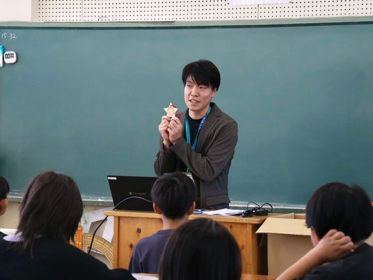 授業では、当社の若手社員でクリスマス担当の土屋喬充さんが