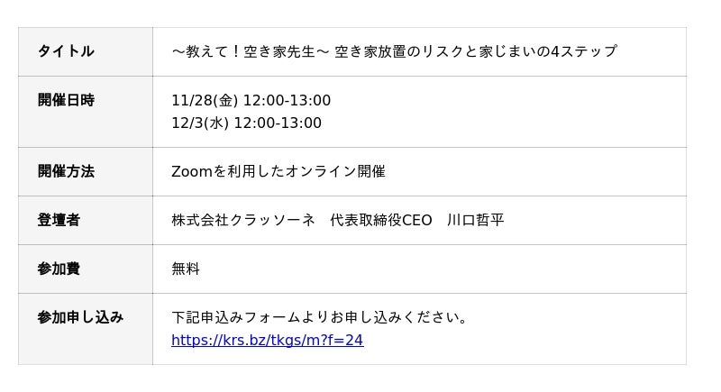 ■家じまいに関するセミナー開催のお知らせ