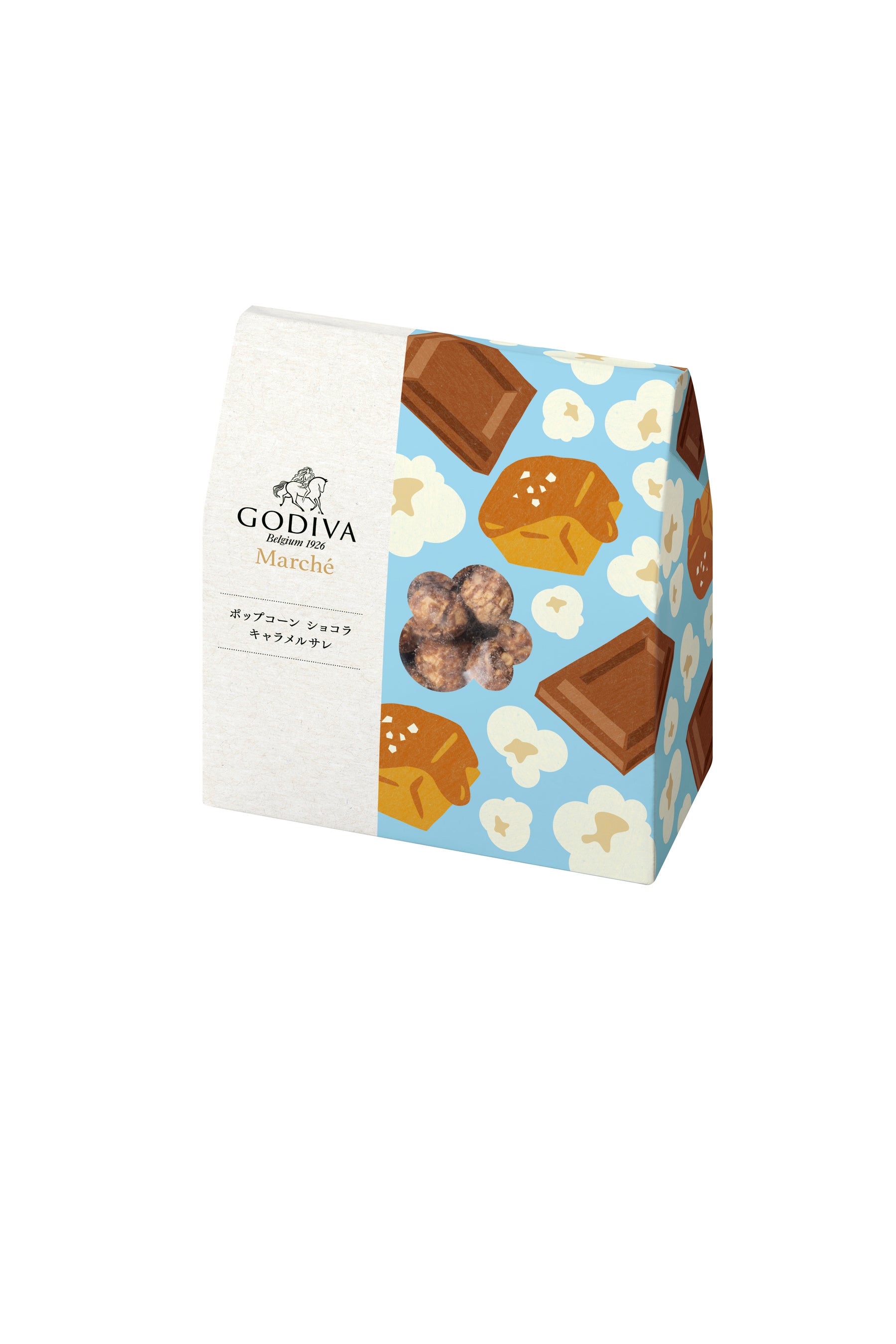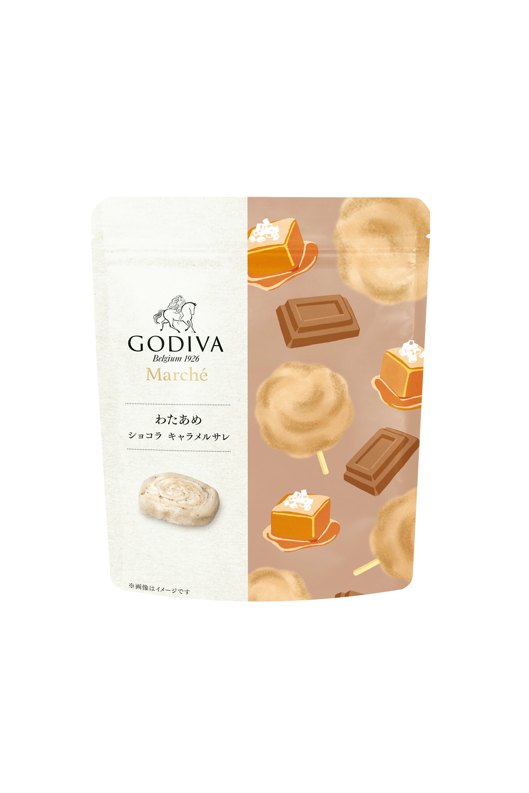 GODIVA Marcheから、「わたあめ ショコラ キャラメルサレ」、「鈴カステラ チョコレート」、「ポップコーン ショコラ キャラメルサレ」の3種類と、保冷バッグをセットにしました。ご自宅用にはもちろん、ささやかなギフトにもご使用いただけるセットです。
