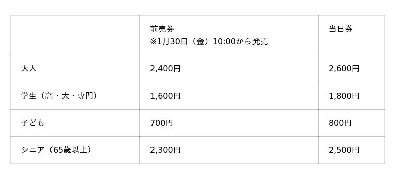 前売券 :1月30日(金) 10:00 ~ 3月26日(木)23:59まで