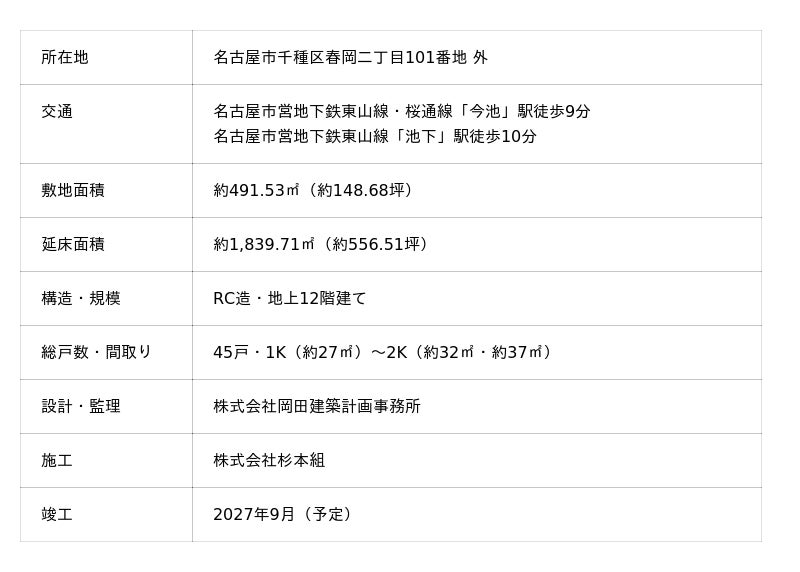 名鉄都市開発株式会社(本社:名古屋市中村区、代表取締役社長:日比野 博、以下「当社」)は、株式会社リブラン(本社:東京都板橋区、代表取締役社長:渡邊 裕介、以下「リブラン」)の協力のもと、全住戸が24時間楽器演奏やゲーム実況等が可能な防音仕様となる賃貸マンション「(仮称)名古屋市千種区春岡二丁目計画」(以下「本物件」)を2026年2月2日に着工いたしましたので、お知らせいたします。