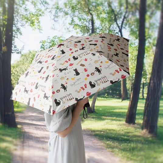 傘を開くと広がるのは、桜の中で寄り添う猫、キッチンで料理をする猫、音符と戯れる猫たち...