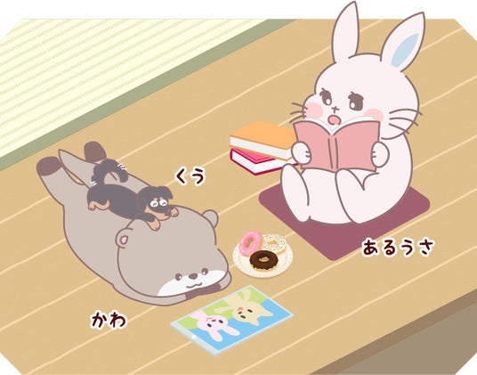 お友達のかわちゃんやペットのくうちゃんとともに