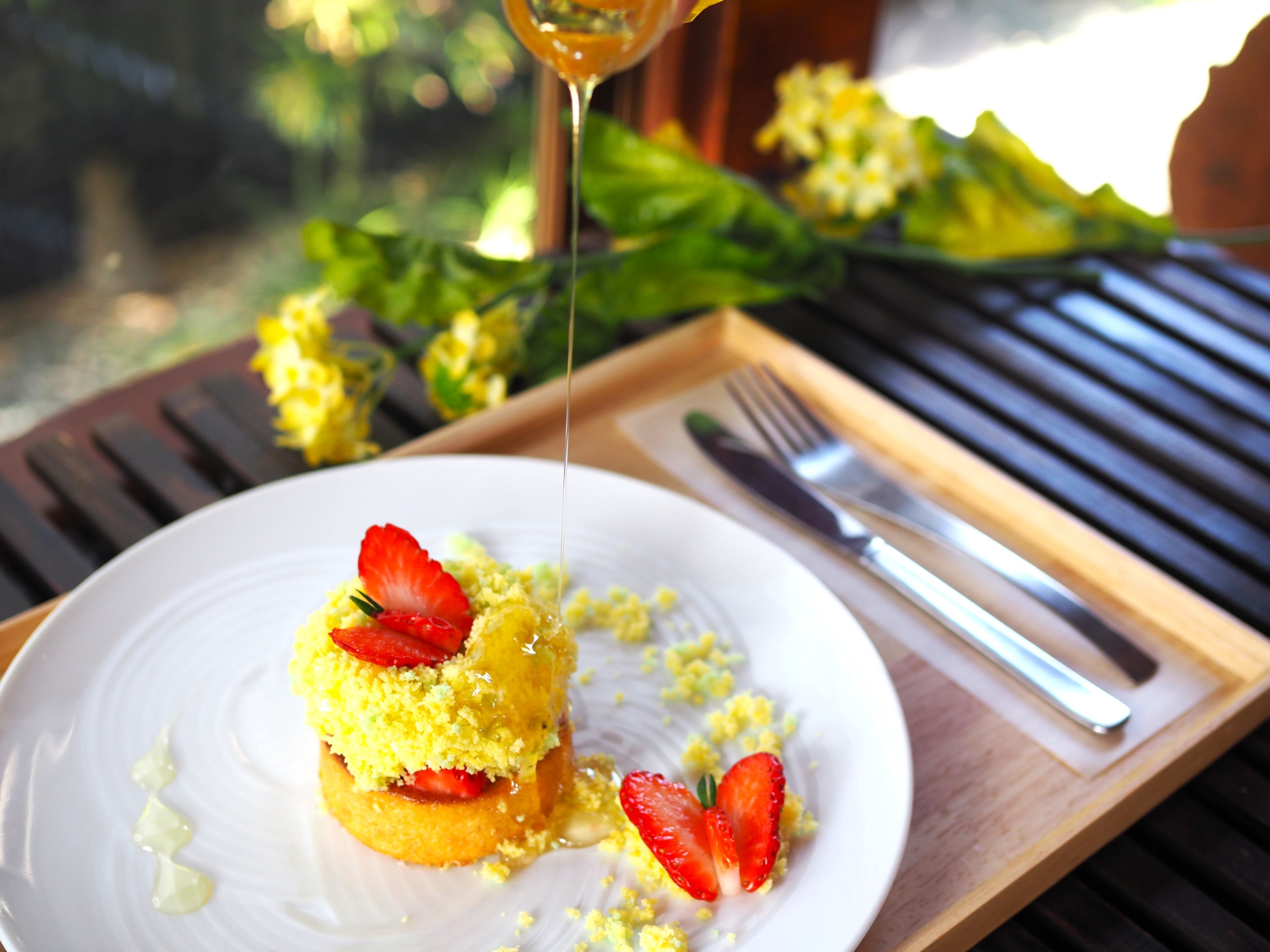 『ちょうちょ舞う菜の花畑のケーキ』は、和と洋を融合させた春限定デザート。