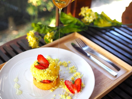 提供時には、菜の花はちみつをたっぷりと追いがけ。