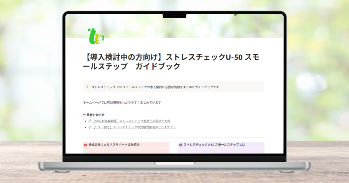 株式会社ウェルネスサポート(本社:東京都港区)は、小規模事業場におけるストレスチェック実施の義務化に先立ち、小規模事業場向け(労働者数50名未満の事業場を想定)のストレスチェックサービス、「ストレスチェックU-50(アンダー50)スモールステップ」をリリースしました。本サービスは通常、当社が提供しているストレスチェックサービスを小規模事業場向けストレスチェック制度実施マニュアル(2026年2月現在は素案)に準拠する形でサービス内容を変更しており、低価格でかつ手間なく、「義務化に向けてまずは実施したい」という企業・団体様に向けて、名前の通り「スモールステップ」にご提供します。