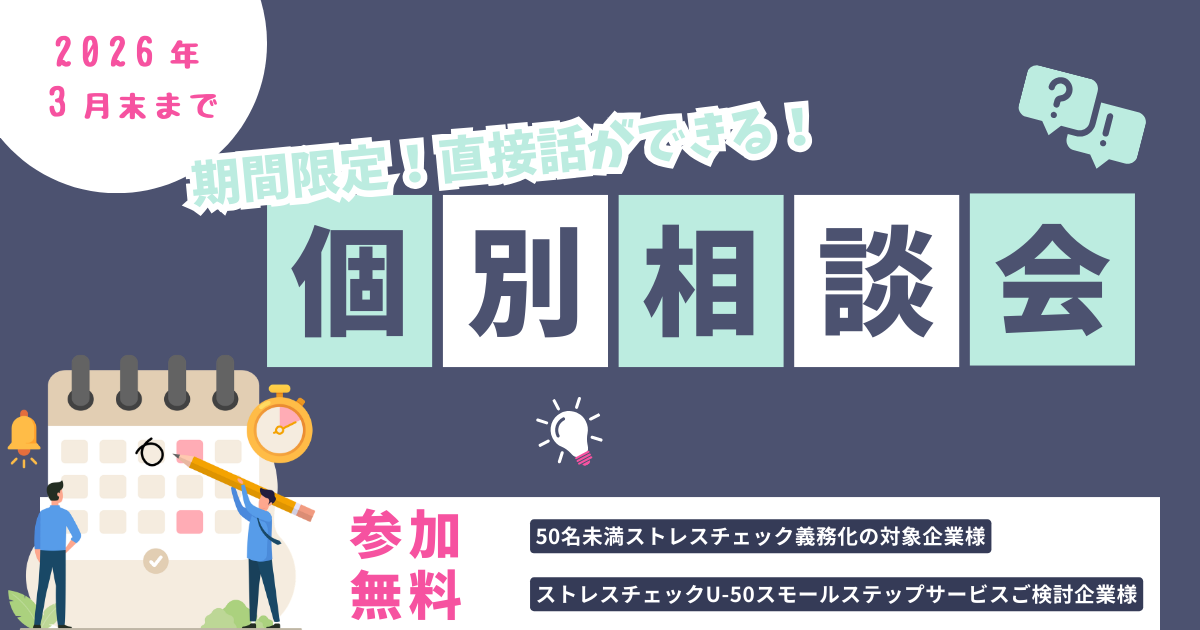 - 個別相談会のご案内ページhttps://wellness-sp.co.jp/industrial-health/individual-consultation_stresscheck-under50.php